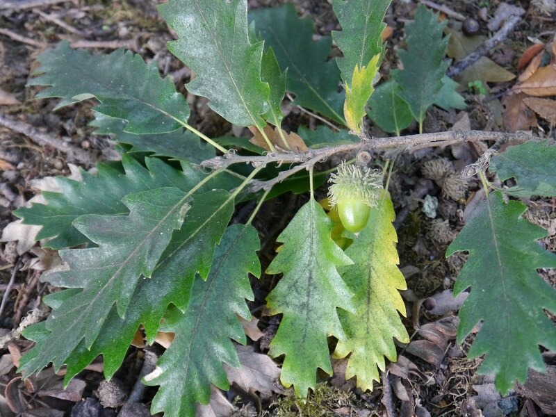 Turkey Oak. Quick growing upright form, tolerates dry & exposure. Acorns.